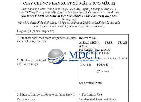 Loại CO dùng cho hàng hóa nhập khẩu từ Trung Quốc về Việt Nam
