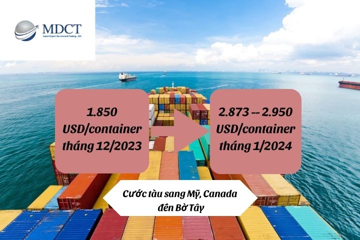 Cước tàu sang Mỹ, Canada đến Bờ Tây tăng mạnh từ cuối tháng 12/2023 đến đầu tháng 01/2024